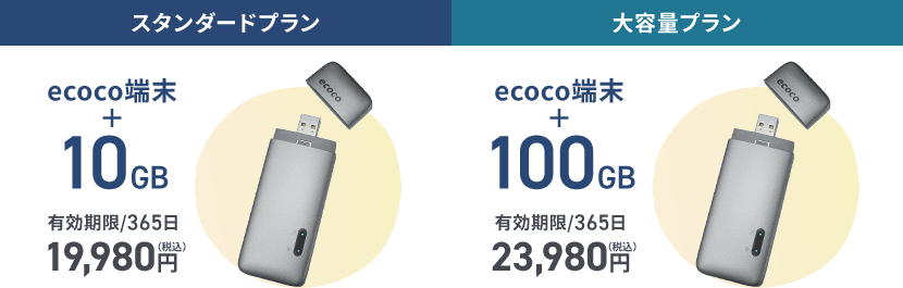 「ecocoスタンダードプラン10GB」・「ecoco大容量プラン100GB」