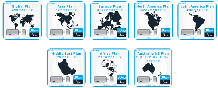 全世界対応をはじめ、ヨーロッパ諸国・北米・南米・オーストラリアなどで使える