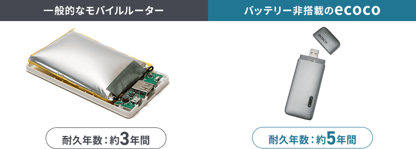 耐用年数は、通常のモバイルルーターの約2倍。